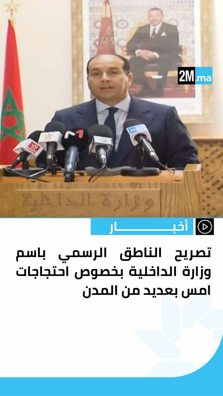 "-تحول بعض هذه الأشكال الاحتجاجية إلى تجمهرات عنيفة استعمل فيها مجموعة من الأشخاص أسلحة بيضاء وزجاجات حارقة والرشق بالحجارة. -إصابة 263 عنصرا من القوات العمومية. -إضرام النار وإلحاق أضرار جسيمة بـ 142 عربة تابعة للقوات العمومية و20 سيارة تابعة للخواص. -وضع 409 شخصا تحت تدابير الحراسة النظرية بتعليمات من النيابة العامة المختصة" 🎙️تصريح الناطق الرسمي باسم وزارة الداخلية بخصوص احتجاجات امس بعديد من المدن.