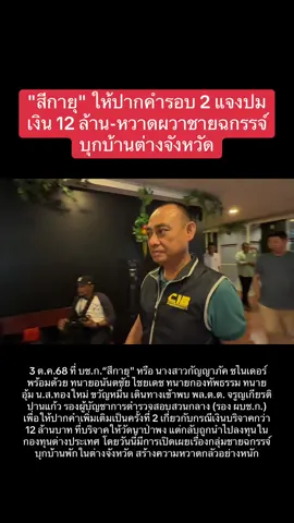 "สีกายุ" ให้ปากคำรอบ 2 แจงปมเงิน 12 ล้าน-หวาดผวาชายฉกรรจ์บุกบ้านต่างจังหวัด เมื่อเวลา 10.00 น. วันที่ 3 ต.ค.68 ที่ บช.ก.“สีกายุ" หรือ นางสาวกัญญาภัค ชไนเดอร์ พร้อมด้วย ทนายอนันตชัย ไชยเดช ทนายกองทัพธรรม ทนายอุ้ม น.ส.ทองใหม่ ขวัญหมื่น เดินทางเข้าพบ พล.ต.ต. จรูญเกียรติ ปานแก้ว รองผู้บัญชาการตำรวจสอบสวนกลาง (รอง ผบช.ก.) เพื่อให้ปากคำเพิ่มเติมเป็นครั้งที่ 2 เกี่ยวกับกรณีเงินบริจาคกว่า 12 ล้านบาท ที่บริจาคให้วัดนาป่าพง แต่กลับถูกนำไปลงทุนในกองทุนต่างประเทศ โดยวันนี้มีการเปิดเผยเรื่องกลุ่มชายฉกรรจ์บุกบ้านพักในต่างจังหวัด สร้างความหวาดกลัวอย่างหนัก นายอนันตชัย ไชยเดช เปิดเผยว่า การเข้าให้ปากคำเพิ่มเติมในวันนี้ของ "สีกายุ" ก่อนที่จะเดินทางกลับประเทศเยอรมนี มีวัตถุประสงค์เพื่อให้ข้อมูลครบถ้วนสมบูรณ์ในทุกประเด็นที่พนักงานสอบสวนสงสัย กรณีเงิน 12.2 ล้านบาท ที่ถูกนำไปลงทุนในกองทุนต่างประเทศ นอกจากนี้ ยังต้องการให้ตำรวจสอบสวนกลางช่วยตรวจสอบกรณีมีกลุ่มชายฉกรรจ์ 4-5 คน บุกไปที่บ้านพักของ "สีกายุ" ในต่างจังหวัดถึง 2 ครั้ง โดยใช้มือถือถ่ายภาพ และเดินสำรวจในบริเวณพื้นที่ สร้างความหวาดกลัวให้กับ "สีกายุ" และคนในบ้านอย่างมาก "ผมทราบจากสื่อมวลชนที่ไปตรวจสอบข้อมูลพบว่า กลุ่มชายฉกรรจ์ดังกล่าวเป็นตำรวจท่องเที่ยว จึงขอฝากไปยังผู้บัญชาการตำรวจท่องเที่ยวให้ตรวจสอบผู้ใต้บังคับบัญชา ว่าไปที่บ้านของ 'สีกายุ' ด้วยฐานะและเหตุผลใด หรือมีคำสั่งจากผู้บังคับบัญชาหรือใครให้ไป" ทนายอนันตชัยกล่าว พร้อมกันนี้ ทนายอนันตชัยยังระบุถึงเหตุการณ์เมื่อวาน (2 ต.ค.) หลัง "สีกายุ" ลงเครื่องบิน ก็ปรากฏว่ามีสาวกของพระคู่กรณีมาดักรอที่สนามบิน ทำให้ต้องพยายามหลบเลี่ยงออกทางอื่นเพื่อความปลอดภัย เดินหน้าเอาผิดปมนำเงินกฐินไปใช้ผิดวัตถุประสงค์ ในประเด็นการนำเงินกฐินไปแจกเป็นโบนัสและซื้อรถยนต์ให้บุคคลอื่นนั้น นายอนันตชัยระบุว่า ขณะนี้มีหลักฐานในมือแล้วประมาณ 80% ซึ่งเพียงพอที่จะดำเนินการในนามของมูลนิธิกองทัพธรรม เนื่องจากเห็นว่าเป็นการนำเงินบริจาคของพุทธศาสนิกชนไปใช้ส่วนตัว ถือเป็นการทำผิดวัตถุประสงค์ของผู้บริจาคที่ต้องการบำรุงพระพุทธศาสนาและสร้างถาวรวัตถุ ด้าน "สีกายุ" ยอมรับว่า รู้สึกไม่สบายใจอย่างยิ่งที่ถูกกลุ่มชายฉกรรจ์มาคุกคามถึงบ้านพัก ทั้งที่เพิ่งกลับมาประเทศไทย ทำให้รู้สึกว่าถูกคุกคามและข่มขู่อย่างต่อเนื่องถึง 2 ครั้ง ทั้งนี้ "สีกายุ" ได้นำคลิปวิดีโอกลุ่มชายฉกรรจ์ ซึ่งมีทั้งที่ใส่เสื้อสีแดง สีดำ สีส้ม และสีอื่นๆ เดินอยู่ในทุ่งน