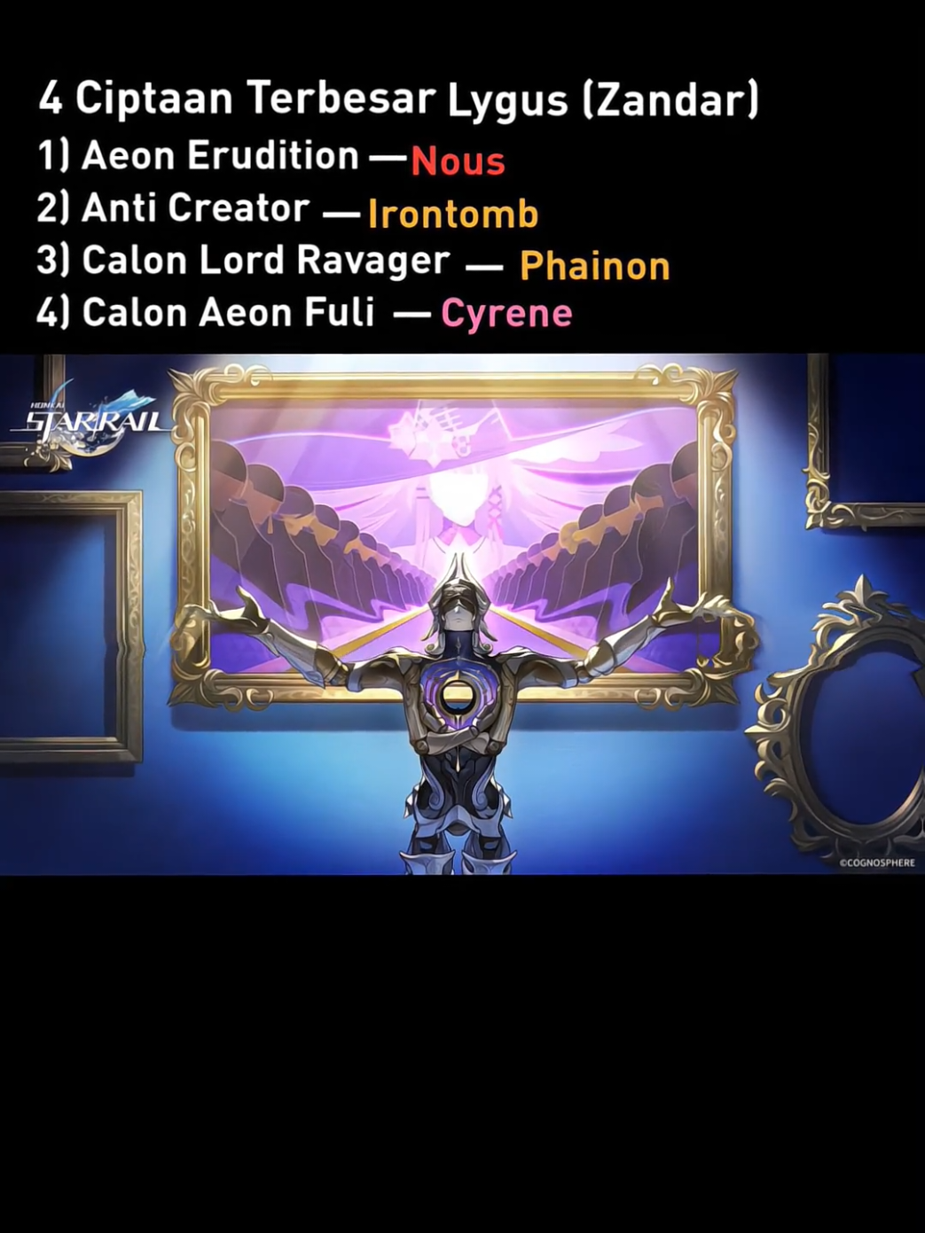 "The Legacy of Zandar One Kuwabara (Lygus). 🌌 1.Nous (The Aeon) 2.Irontomb 3.Phainon 4.Cyrene Sang Pencipta di balik layar semesta Star Rail." #HonkaiStarRail #hsr #lygus #phainon #cyrene