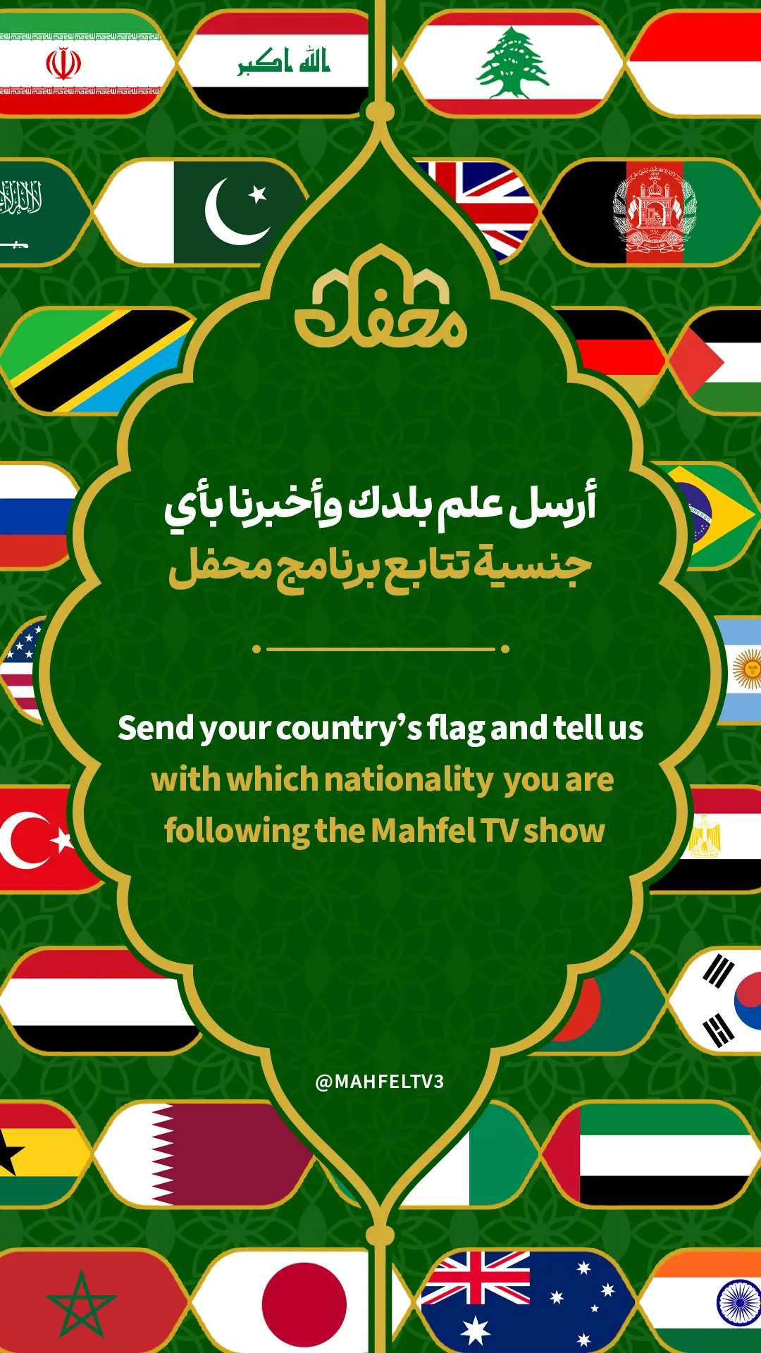 "أرسلوا علم بلدكم في التعليقات حتى نعرف من أي بلد تتابعوننا." "Send your country’s flag in the comments so we know which country you are following us from."