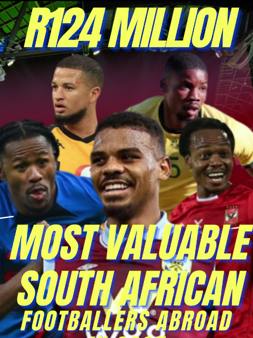 "Top 5 Most Valuable South African Footballers Abroad in 2025 💰🇿🇦" 👉 #1 is worth over R120 million! #fyp #vira #viraltiktok #betwaypremiership #southafrica #clubworldcup #transfermarkt #top5 #footballtiktok #mzansicomedy #mzansisouthafrica #dstvpremiership #football