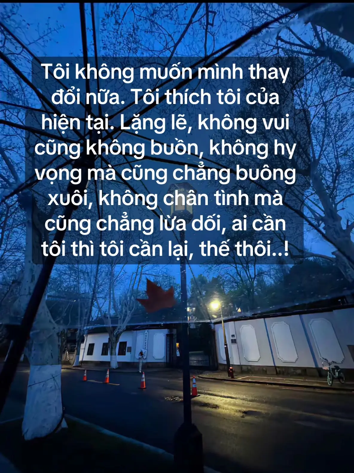 "Tôi không muốn mình thay đổi nữa. Tôi thích tôi của hiện tại. Lặng lẽ, không vui cũng không buồn, không hy vọng mà cũng chẳng buông xuôi, không chân tình mà cũng chẳng lừa dối, ai cần tôi thì tôi cần lại, thế thôi..!"#xh
