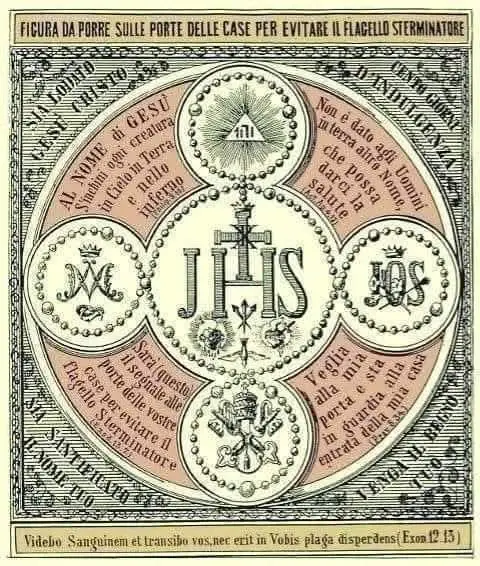 "I TRE GIORNI DI BUIO" SALVATE L'IMMAGINE SUI VOSTRI (SMARTPHONE, TABLET E PC), E FATEVI STAMPARE UNA FOTOCOPIA A COLORI DELLA SACRA INSEGNA DEL SANTISSIMO NOME DI GESÙ CHE VEDETE. FATELA PLASTIFICARE ED ESPONETELA FUORI LA PORTA DELLA VOSTRA CASA DURANTE IL TEMPO DELLA GRANDE TRIBOLAZIONE CHE VERRÀ. "L'immagine va esposta esternamente fuori tutte le entrate della casa una settimana prima che avvenga pienamente il giorno del grande castigo della grande oscurità. Questo per far sì che tutti i coloro che posseggono questa insegna sacra siano protetti dallo sterminio e dalla persecuzione degli spiriti infernali, e che siano risparmiati dalla violenta rappresaglia demoniaca, delle forze degli inferi, ed anche dall'immimente passaggio dell'Arcangelo della morte incaricato da Dio, a far perire tutti i malvagi e tutti coloro coi quali non si sono mai decisi e non hanno mai voluto convertirsi. Come quando avvenne in Egitto, ai tempi di Mosè, quando Dio inviò l'Arcangelo della morte a far perire tutti i primogeniti egiziani, risparmiando i primogeniti israeliani che hanno fatto spalmare il "Sangue dell'agnello sugli stupiti delle porte esterne, affinché il popolo di Israele fosse liberato per sempre dalla schiavitù della tirannia spietata del faraone, così anche noi dobbiamo usare questa immagine sacra per proteggerci dal terribile flagello. ---------------------------------------------------------------- Preghiera a San Leonardo da Porto Maurizio O Dio, che per ridurre a penitenza i cuori ostinati dei peccatori hai reso potente in opere ed in parole il beato Leonardo tuo confessore, concedici, te ne preghiamo, che per i suoi meriti e preghiere possiamo pentirci dei nostri peccati. Amen Preghiera scritta da San Leonardo da Porto Maurizio Vieni, o mio caro Gesù vieni dentro questo mio povero cuore e sazia le mie brame; vieni e santifica la mia anima: vieni Gesù dolcissimo, vieni col tuo santissimo Cuore dentro il mio povero cuore, che ti dono e ti offro. Amen