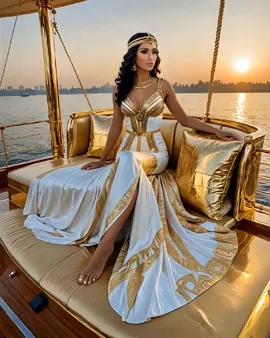 "Die Königin des Nils segelt in purem Luxus – Anmut, Macht und ewige Schönheit." 👑✨🌊 #Cleopatra#fyp #EgyptianQueen #GoldenBeauty #AncientEgypt #Luxury #AIArt #CinematicScene #EpicVibes #Legendary