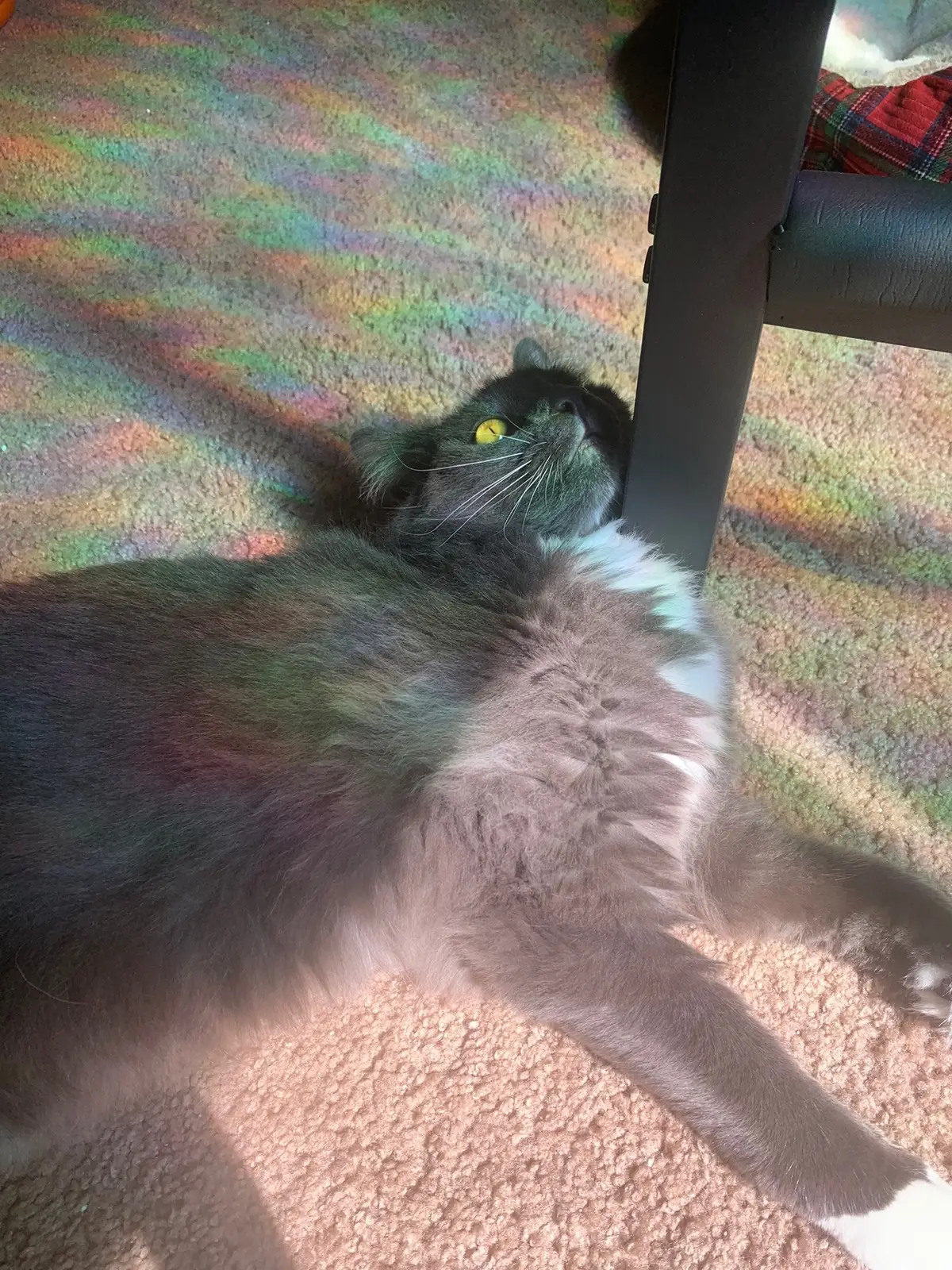 Weekly notes: Mouse purrs when I lay my head on him. He stopped meowing in the morning, instead he lays on my chest and moves every 30 seconds. He sunbathes in my rainbow. Bought more storage for more videos and pictures of cat. He hates when I play YouTube videos out loud. Been working a lot so he’s needy. Haven’t unpacked from vacation. #cat #catlife #meow #kitty #catsoftiktok