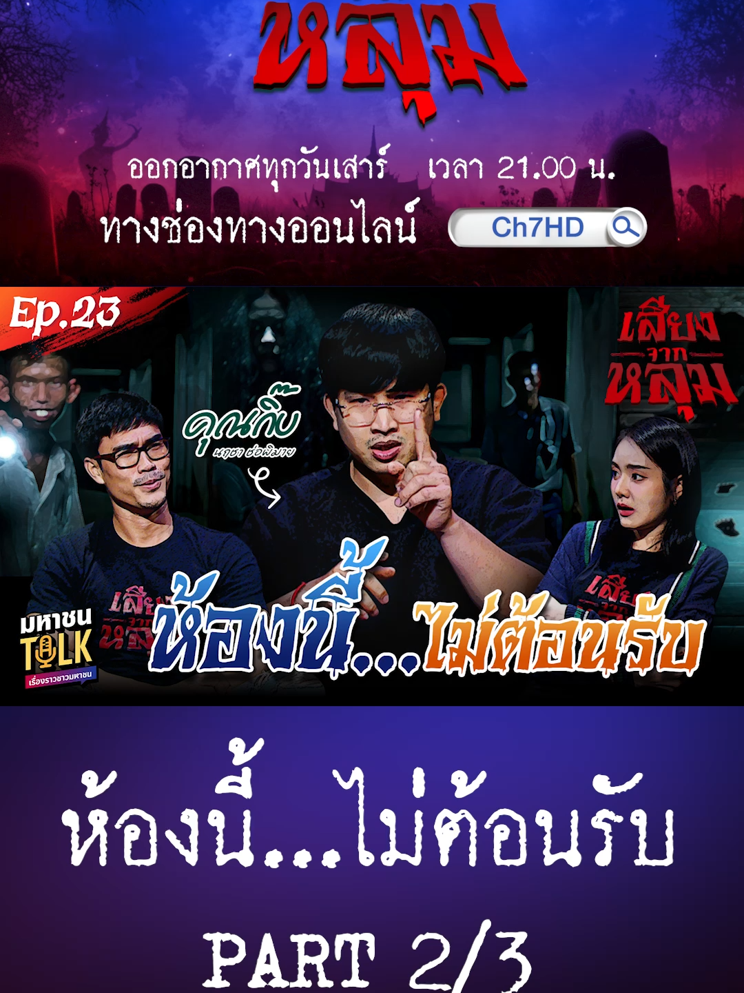 "ห้องนี้..ไม่ต้อนรับ" EP.23 (2/3) คุณกิ๊บ นฤชา | เสียงจากหลุม มหาชนTalk บางสถานที่…ไม่ได้มีแค่ ‘คน’ ที่ใช้ชีวิตอยู่ในนั้น คืนนี้ พบกับ “คุณกิ๊บ” กับประสบการณ์หลอนทั้งห้องพักและไซต์งานก่อสร้าง ที่หลอนทั้งตอนตื่น และฝันร้ายแม้ยามหลับตา 🎵 กลางดึกคืนหนึ่ง เสียงฮัมเพลงเบา ๆ ดังแว่วในห้องที่ควรเงียบสงัด 🚪 เมื่อเปิดประตูเข้าไปตรวจดู กลับไม่มีใครอยู่ในห้องน้ำและน้ำไม่ได้ถูกเปิดอยู่ 👧 ตะโกนถาม “ใครอยู่ตรงนั้น!?” เสียงผู้หญิงตะโกนกลับมาแบบชัดเจน “มึงไม่ต้องหา…กูอยู่ในนี้” 🫣 จากนั้น...มีใบหน้าผู้หญิงค่อย ๆ ก้มลงมาหา พร้อมพูดเสียงเย็นเฉียบว่า “ห้องกูอยู่นี้ ออกไป!!” นั่นเป็นเพียงจุดเริ่มต้น…ก่อนเหตุการณ์หลอนอีกครั้งจะเกิดขึ้นในที่ทำงานที่คุณกิ๊บเชื่อว่าปลอดภัยที่สุด ⚠️ วันที่สลิงขาด ฟาดหน้าคนงานชายอย่างแรงต่อหน้าต่อตา 🩸 แม้ภาพจะสยอง แต่ไม่นาน…คนงานคนนั้นกลับเดินมาหาอีกครั้ง ราวกับไม่เคยเป็นอะไร 🌙 คืนนั้น…เขาเคาะประตูเรียก พร้อมพูดว่า “ช่วยหาหูพี่ให้หน่อย…หูพี่ขาด” บางครั้ง…สิ่งที่เดินเข้ามาในห้อง อาจไม่ต้องใช้กุญแจ และสิ่งที่ “ตอบกลับ” คุณมา…อาจไม่ได้อยากพูดคุย แต่มา “ทวงสิทธิ์บางอย่าง” ที่เคยเป็นของเขา คืนนี้ ฟังเรื่องของคุณกิ๊บ แล้วถามตัวเองว่า "คุณแน่ใจได้ยังไง…ว่าเสียงที่คุณได้ยินตอนกลางคืน มาจากคนที่ยังมีชีวิตอยู่ ?" 📌 พบกับเรื่องราวสุดสยอง ทุกวันเสาร์ 21:00 น. 📣 ใน #มหาชนTalk รายการ #เสียงจากหลุม ทุกช่องทาง Online ของ #Ch7HD กล้าดูมั้ย… ถ้ากล้า กดแจ้งเตือนไว้เลย ! 📣 มาร่วมแชร์ประสบการณ์หลอนกันที่ ไลน์official