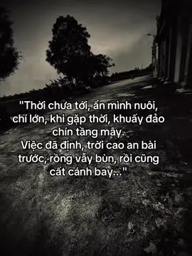 "Thời chưa tới, ẩn mình nuôi, chí lớn, khi gặp thời, khuấy đảo chín tầng mây. Việc đã định, trời cao an bài trước, rồng vẫy bùn, rồi cũng cất cánh bay..." #fyp #tamtrang #sory #sttxahoi #hoanganh29012003