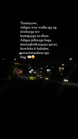 "Ilaahayow, Adigaa wax walba iga og, sirahayga iyo hamigayga oo dhan. Adigaa jidkayga haga, mustaqbalkeygana qurxi, howlaha ii fududee, naxariistaadana igu Hag."#viral #somalitiktok #nairobitiktokers #Lii