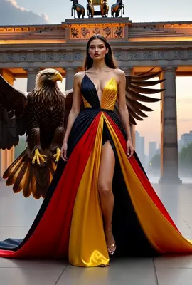 "Where fashion meets homeland power — Germany on the runway. Wrapped in my nation’s colors, guided by its Golden Eagle." #germany #viral #model #berlin #foryoupage❤️❤️