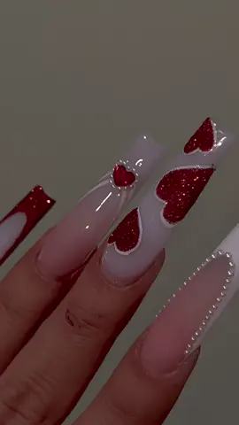 "✨💅 Dale un toque romántico a tus uñas largas con este diseño espectacular en blanco y rosado, ¡perfecto para cualquier ocasión! ❤️💖 Los corazones rojos añaden un detalle encantador que no pasará desapercibido. ¿Listas para lucir unas uñas de ensueño? 🌟 #UñasLargas #DecoraciónDeUñas #NailArt #Amor"#NailArt video original de @Nailzval