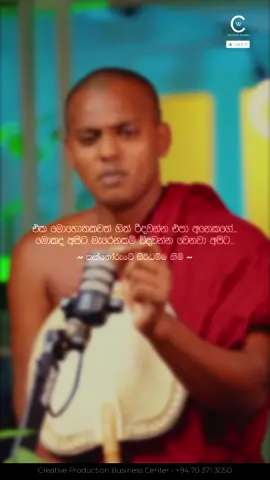 "එක මොහොතකවත් අනෙකාගේ හිත් රිදවන්න එපා... මොකද මැරෙනකම් විදවන්න වෙනවා..." ~ කත්නෝරුවේ සිරිධම්ම හිමි ~ ඔබට අවශ්ය ඔබ නොදන්නා කරුණු දැනගැනීමට Creative Production දැන්ම Follow කරන්න. #creativeproduction #creativewords